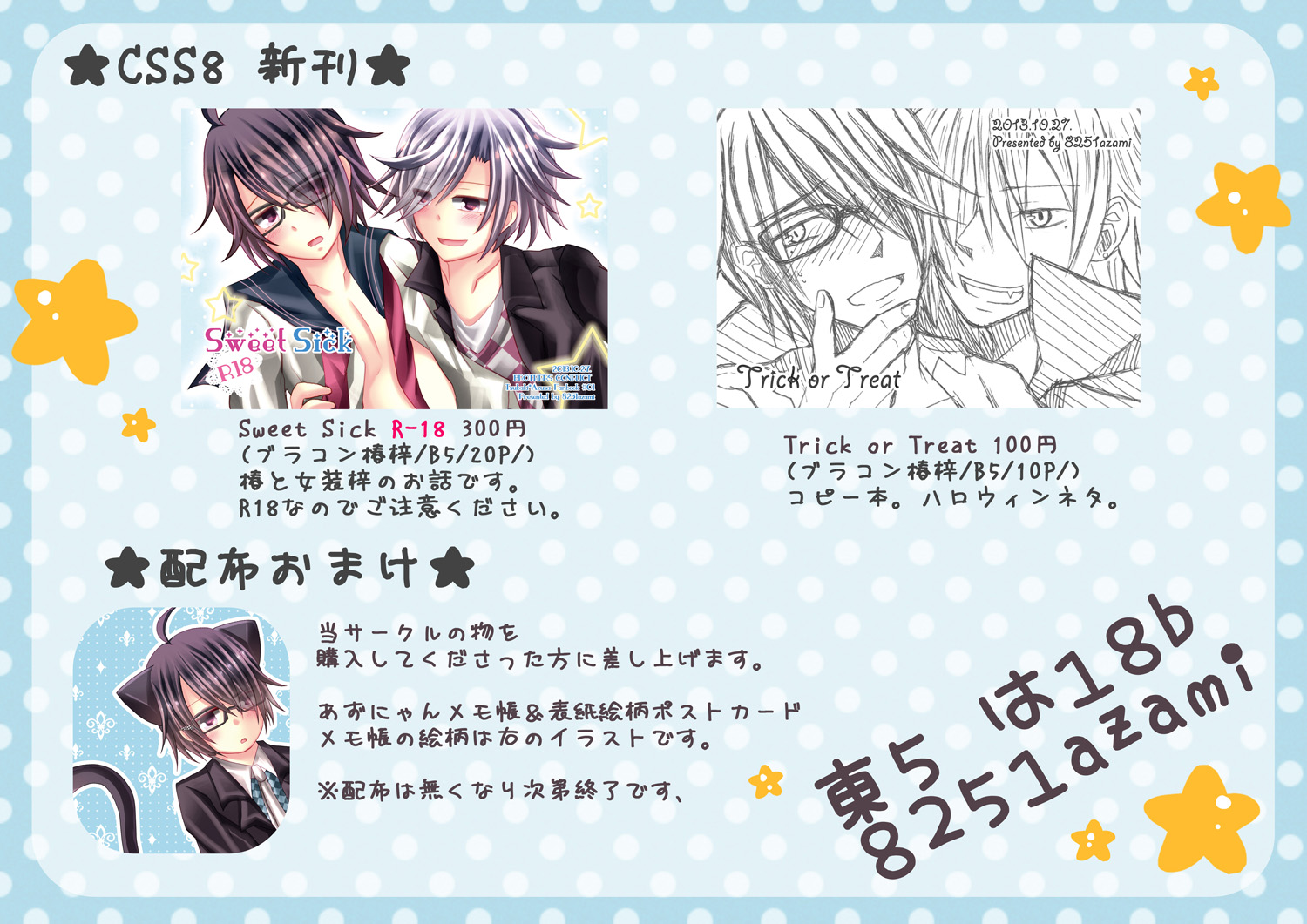 新刊は、R-18椿梓本と椿梓コピー本です。
